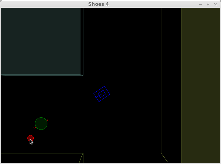 A little tank game There are a lot more samples… you can play pong, watch some fancy animations, a simple to do list etc… One of the apparent questions is: “Can I use shoes4 right now?” The answer is: “Not yet.” We are in pre-alpha stage. While a lot of things work, some don’t. We will let you know when we release an alpha release or a release candidate for you to check out. However if you’re adventurous you can check out the master on github no matter what, feedback and reports about bugs are highly appreciated! So what is missing? Here are a couple of bigger things that are missing as of now: